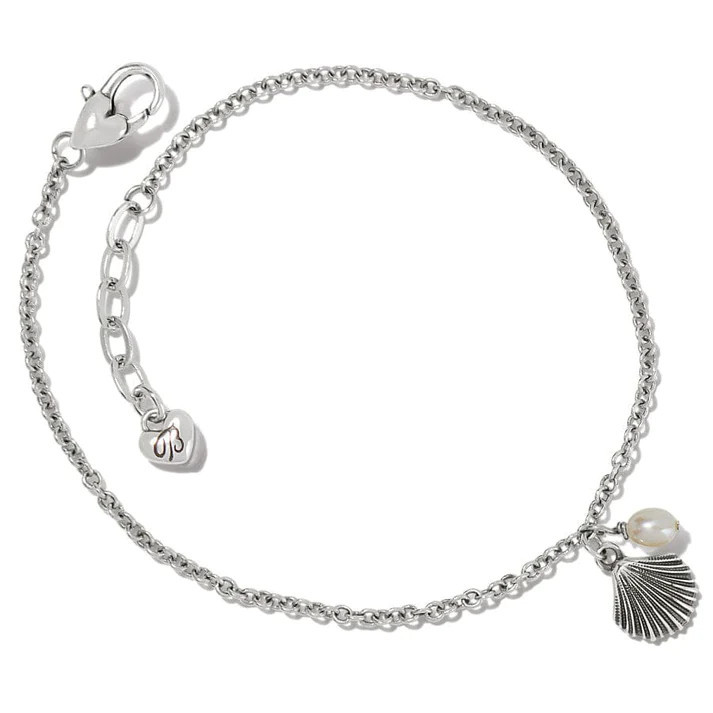 The Silver Shells ankle bracelet gets the beach vibes going with an anklet dangling a beautifully etched silver shell ornament and a pearl.