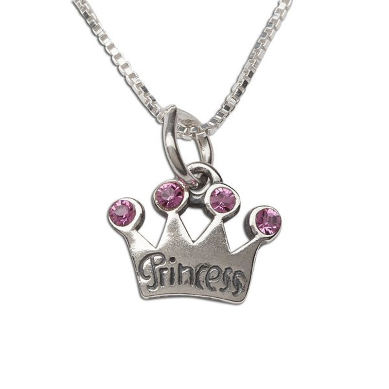 A timeless keepsake necklace for girls made using only the finest materials such as 100% sterling silver components and sparkling light pink crystals with a princess tiara pendant. This comes boxed in a window gift box and makes a special keepsake for girls who love to be a princess.