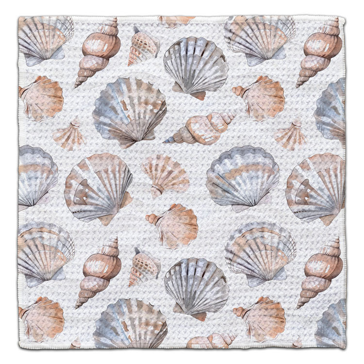 This Mixed Sea Shells print Eco-Friendly washcloths encompass style and function, the waffle weave Eco-Friendly washcloths are made from a polyester blend that incorporates 1 recycled plastic water bottle per towel. The waffle weave pattern not only helps them absorb 5 x 7 times their weight, but also dry quicker.