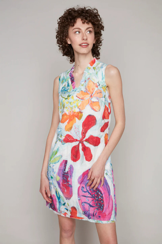 Brilliant bold flowers on this A Smattering Of Spring artwork by Claire Dejardins brings a whole new way to wear casual!