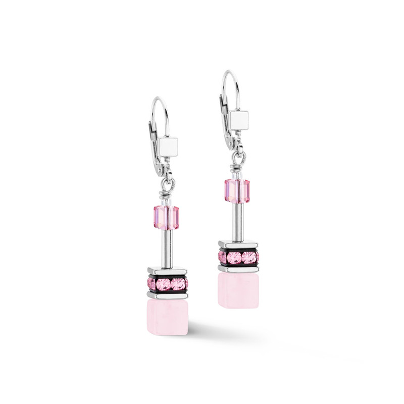 Sweet pink! The GeoCUBE® Iconic Precious Earrings Pink - enchant with rose quartz and pink Swarovski crystals.