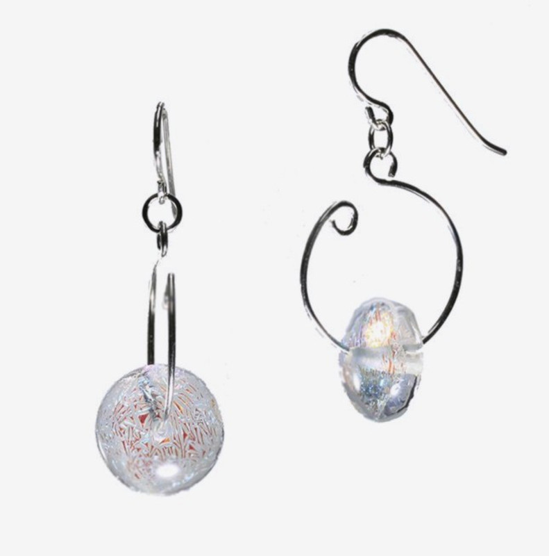 The use of dichroic glass adds a reflective quality that plays with light, shimmering with every movement.