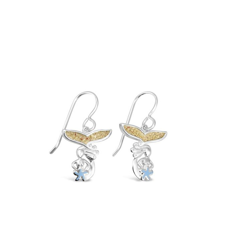 A Miniature mermaid with a large fin tail filled with beach sand, she holds a blue starfish. Perfect for all Mermaids.