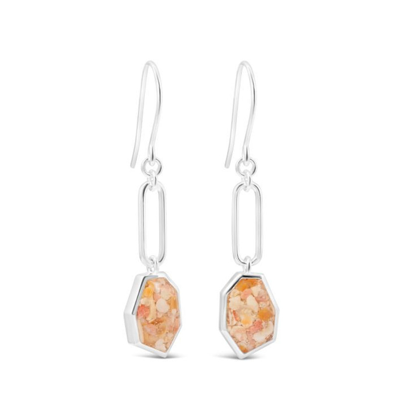 Celebrate the harmony of strength and movement with the Rock and Tide Earrings. Drawing inspiration from Alaska’s rugged tides and rocky shorelines worldwide, these sterling silver drop earrings feature a sleek paperclip design paired with an organic, rock-like shape that embodies the raw beauty of nature and filled with an ocean element.