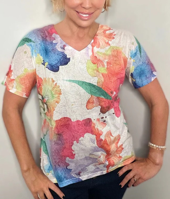 You'll wear your elevated tee by Ethyl over and over again! Do not hesitate to add this to your closet. Modified v neck and modest short sleeve design makes this a winning item for all figures. Lightweight cotton fabric makes this a soft and breathable option to wear alone or layer under your favorite jacket .
