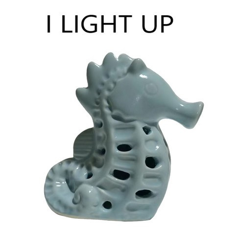 This ceramic seahorse has cut out in the body to let a light shine through. A great nightstand night light for your beach house.