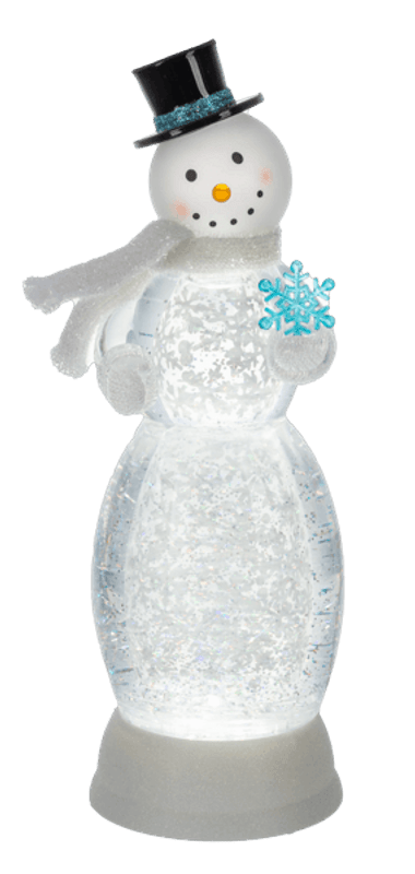 This light up water globe Snowman shaped figurine is not a bit cold, he will warm up your house for the holidays with cheer!