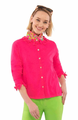 Gretchen Scott tops have a special appeal. A blouse is not just a blouse. It may have an added ruffle to the sleeve or the body. It may have a wrap tie, a twist, an angled hemline, or a higher-than-normal collar that gives you a royal appearance. Her tops may be in a vibrant color, a fun print, or plain with a beautiful embroidered accent. These tops are designed to coordinate with Gretchen Scott pants, and the colors and styles all work together to make you the best dressed.