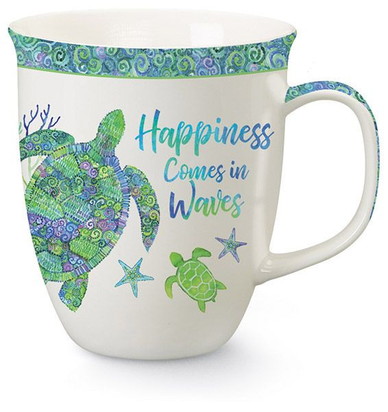 The Harbor Mug has become a Cape Shore staple. Beautiful full wrap design of turtles and starfish, with a decorated handle. Classy and elegant shape.
