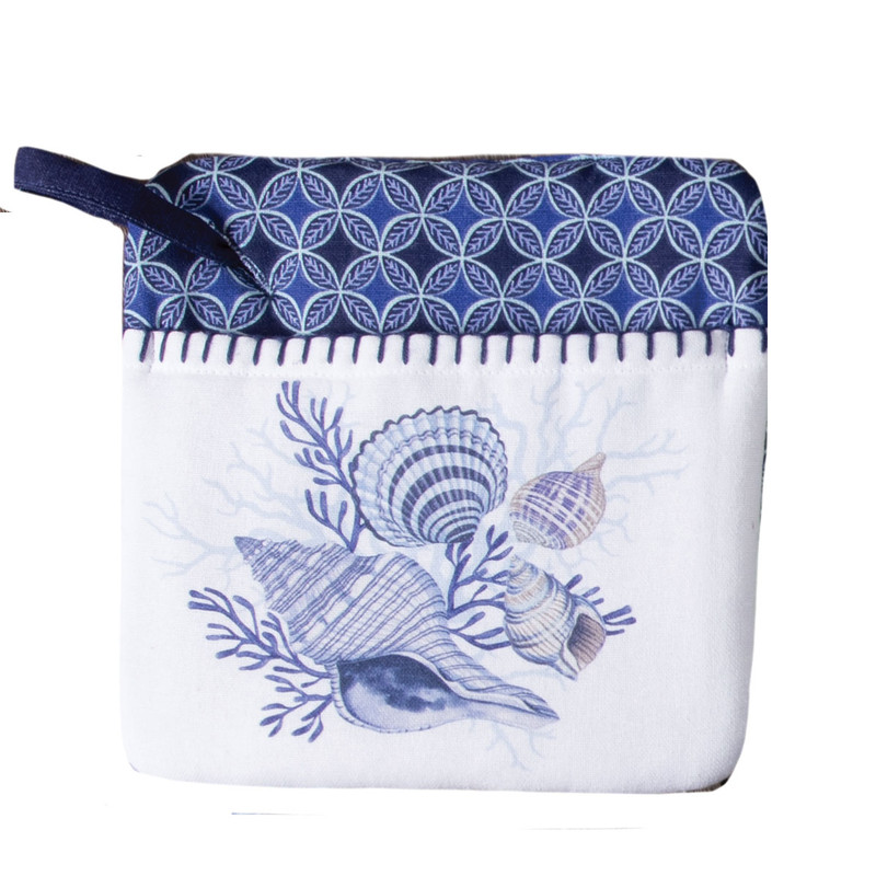 Add a little blue coastal shells to your kitchen, hang this Kay Dee pocket mitt where is it easy to grab and be seen.