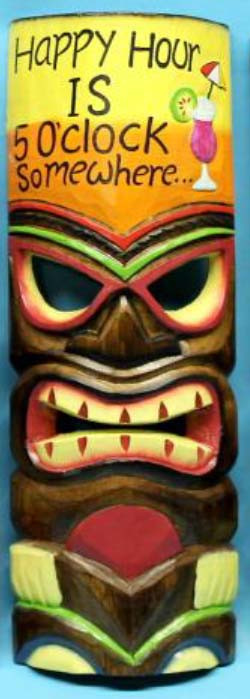 This brown wood Tiki pole mask is heavily carved with a fun saying in bright colors. Add a little fun to you indoor or outdoor party space. Hang these Tiki masks on a wall or place on your Tiki bar counter!