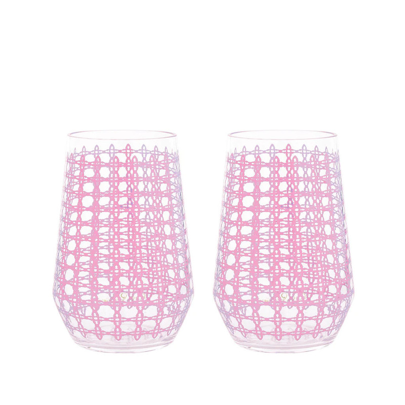 Whether it's a happy hour cocktail or chilled glass of bubbly this stemless tumbler set lets you sip in style. Each wine glass is made of a sturdy acrylic material and wrapped in a chic caning print to add some Lilly to your home.