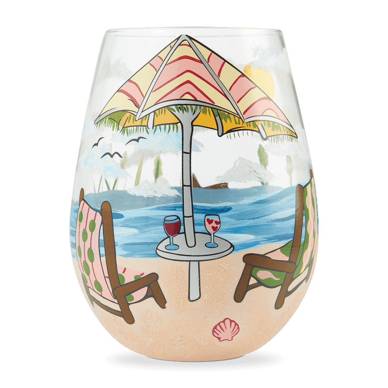 Sandy toes, beachy hair and not a worry in the world. Nothing says happy place like this wine glass. Sit in a chair under a beach umbrella and have a drink. Bottoms up, beach!