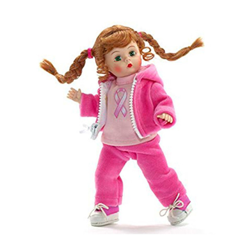 Wendy is on a walk to support the Cure for Cancer, she wears a hot pink velour zippered jogging suit with a pink shirt underneath with a breast cancer symbol, she has on hot pink sneakers and has a special "Cancer Care" wrist tag