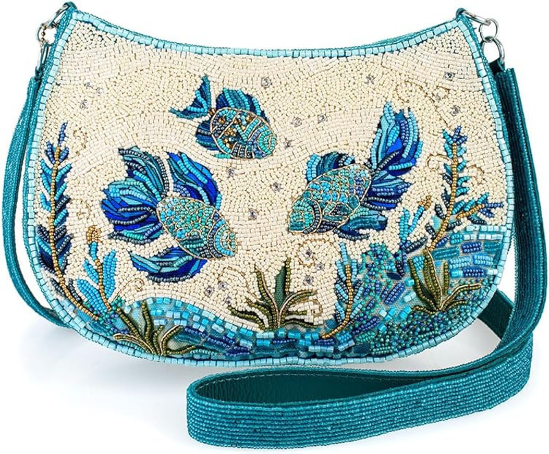 Dive into serenity with this stunning with Mary Frances Blue Fish Harmony crossbody handbag. Makes waves with this purse.