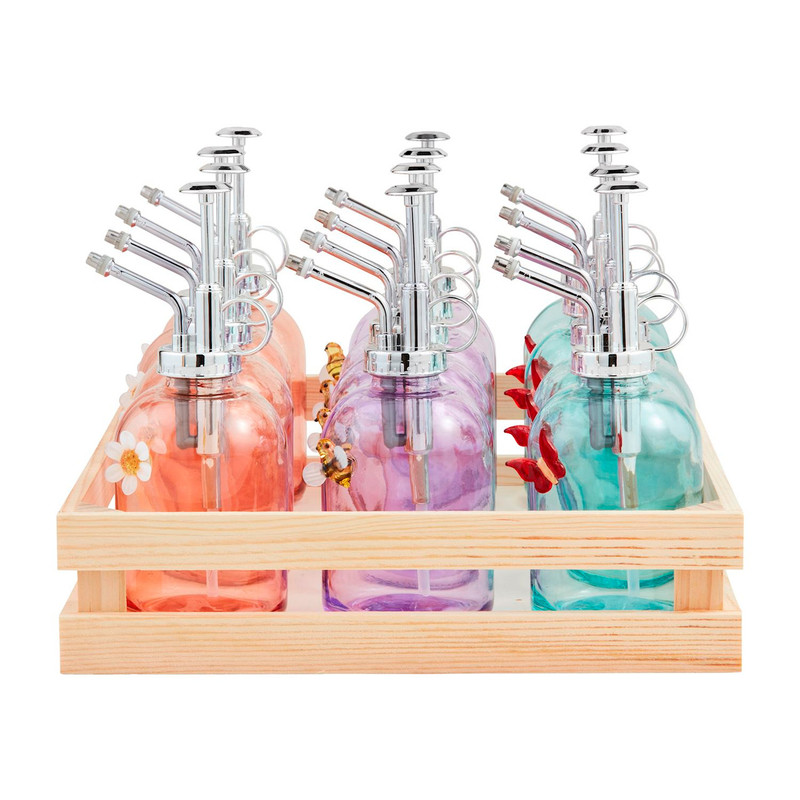 These tinted glass water mister for plants from Mudpie is a stylish and functional with a dimensional charm on the front.