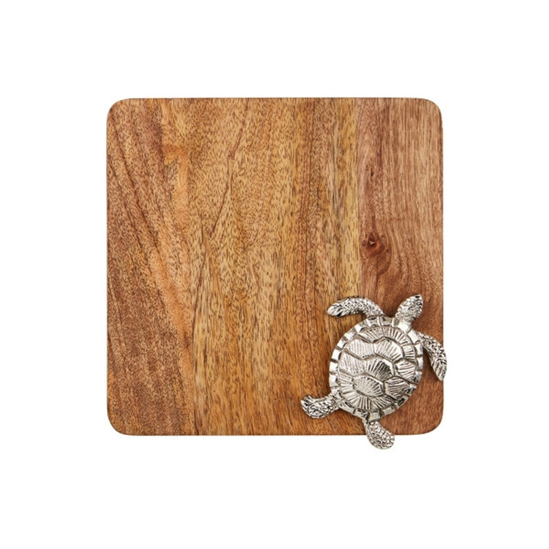 These Wood Boards by Mudpie are crafted from high-quality mango wood, this charming board features a unique metal sea life attachment, adding a touch of coastal elegance to your kitchen or dining space. Measuring 8" x 8", it offers a perfect size for serving appetizers, cheeses, or small bites. The natural grain of the mango wood provides a warm and inviting aesthetic, while the intricate metal detailing enhances its visual appeal. Ideal for ocean lovers or anyone looking to bring a bit of the seaside into their home, this board combines functionality with artistic flair, making it a delightful addition to any culinary setting.
