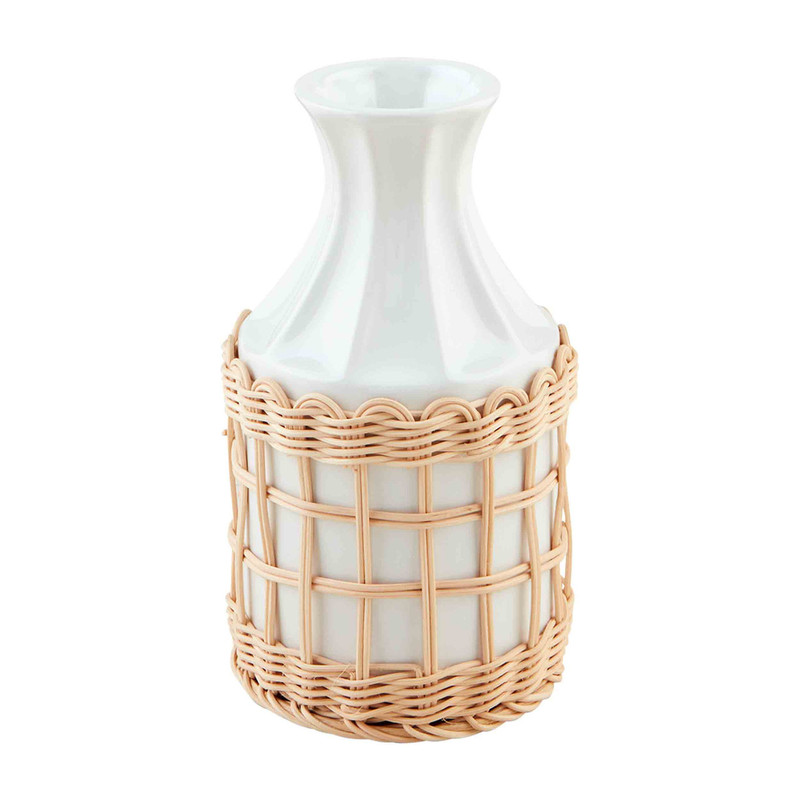The Short Woven Wrapped Vase features a remarkably stunning design. The fluted ceramic vase features a woven rattan sleeve. This vase makes the perfect neutral accessory for any room in your home. We love to pair this with pampas grass to continue with the neutral theme.
