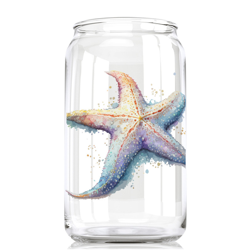 This full color 360 degree design of a starfish on a can shaped pint glass will make your drink memorable. They also make great coastal gifts.