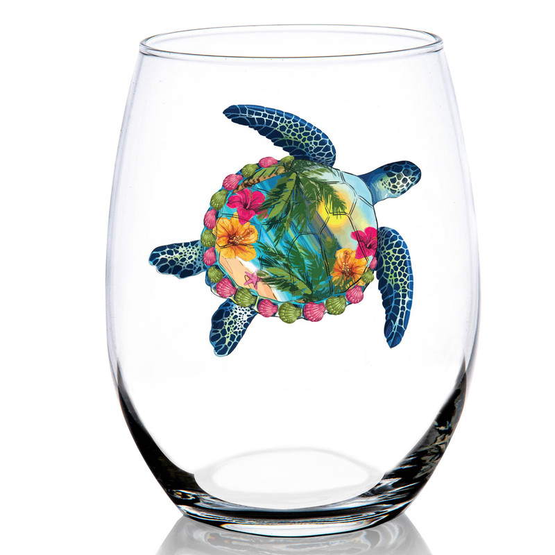 This full color design of a Sea Turtle with a Tropical Scene on it's shell will make drinking your glass of wine memorable. They also make great coastal gifts.