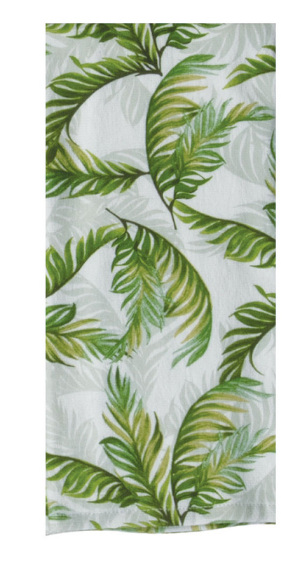 Welcome to paradise with this gorgeous towel, bringing a sophisticated taste of the tropics to the kitchen in soft colorways! Dual purpose terry towels feature 2-in-1 functionality with a flat weave front ideal for drying glassware, and absorbent terry cloth back side for everyday kitchen tasks!