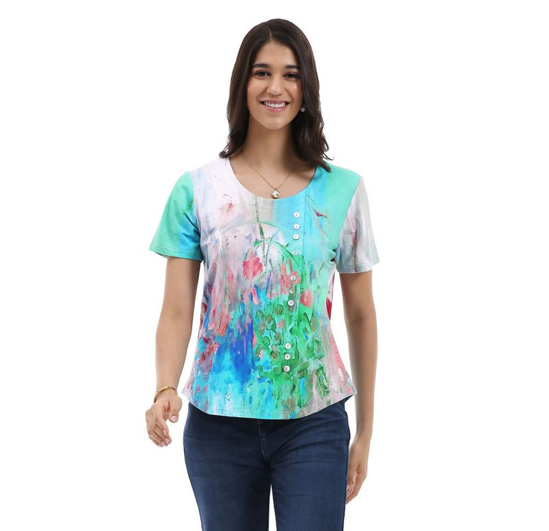 This Kendall top from Parsley and Sage in a floral watercolor print is cute as a button with button accents. Soft and comfortable, easy to wear.