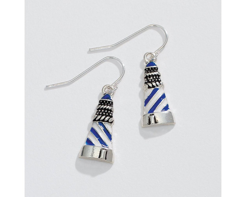 Celebrate your love for Lighthouses with these cute blue and white striped Lighthouse shaped earrings. Coastal earrings!