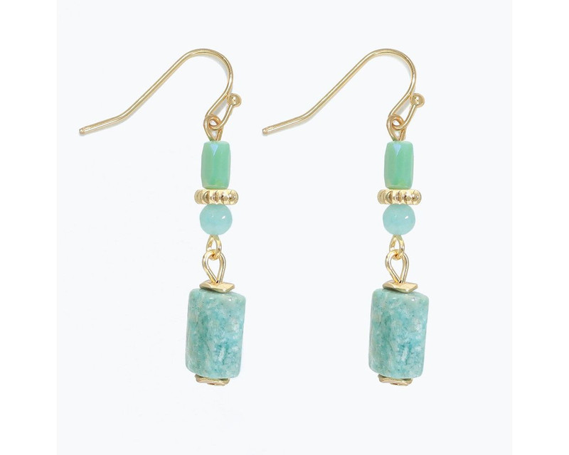 These genuine Amazonite earrings are in a cylinder shape with a round center bead.