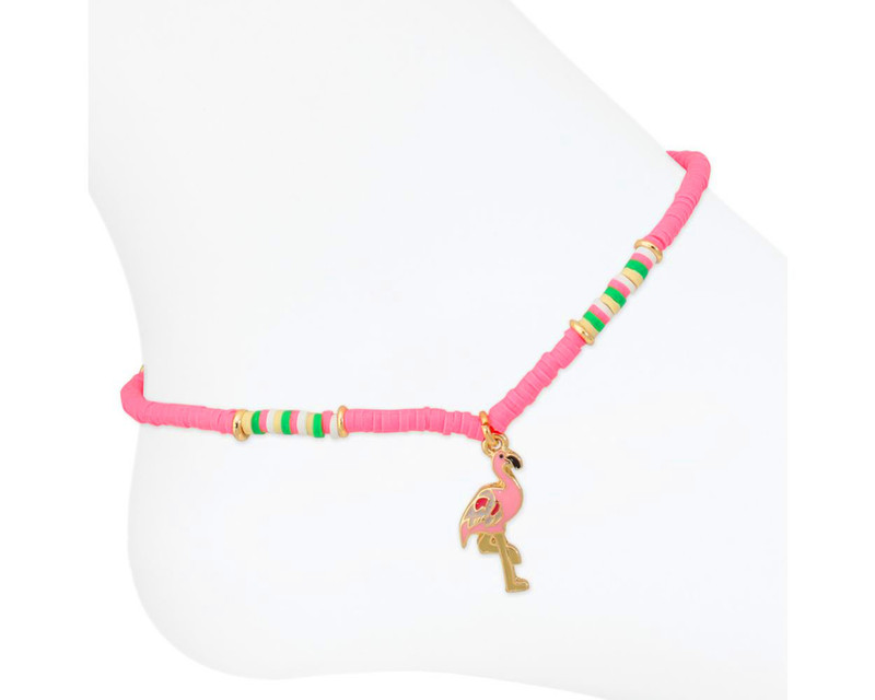 Celebrate your love for the Flamingos with this fashionable ankle bracelet with neon pink disc beads and a enamel Pink Flamingo dangle charm.