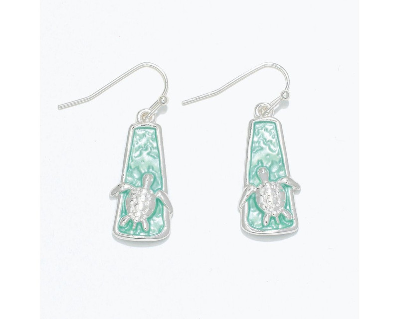 Celebrate your love for sea turtles with these earrings. The background is an opal resin that glistens like the ocean.