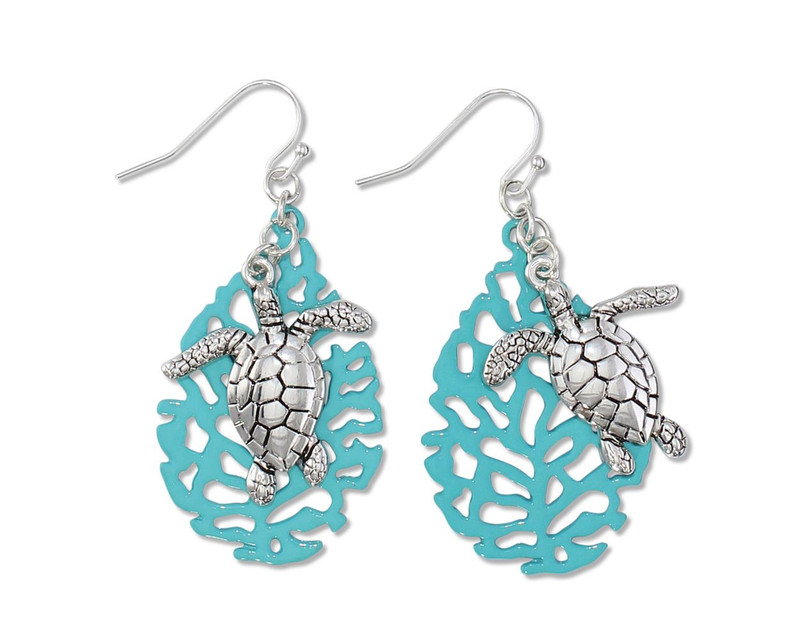 Celebrate your love for sea life with these teardrop shaped earrings that are designed to look like sea coral. A silver sea life charm dangles among the coral reef.