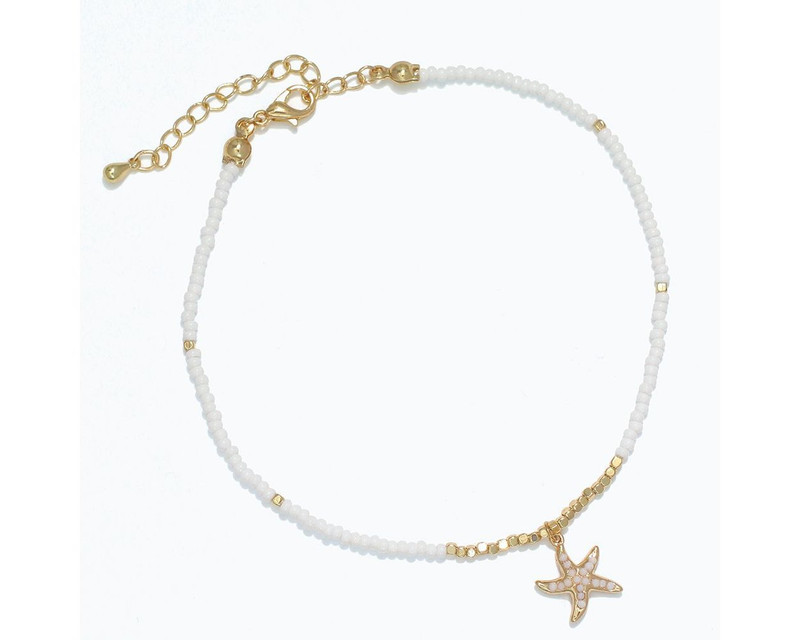 Wear this elegant white and gold anklet bracelet with anything. Tiny seed beads in white and gold. Beach Jewelry!