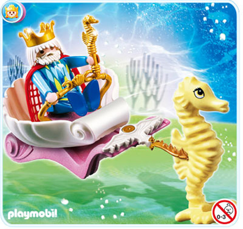 The Playmobil Ocean King play set offers hours of fun. Snap the pieces together to create an ocean king in his seashell chariot pulled by a seahorse.