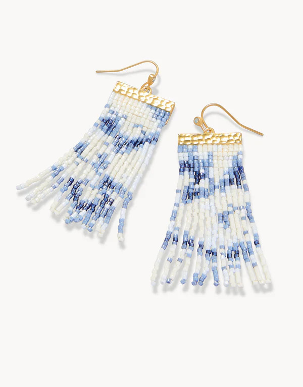 Like the thin swaying grasses of the Lowcountry Salt Marsh, these tassel earrings are all about delicate beauty. Tiny glass beads are delicately hand woven to make these show stopping swinging blue tides tassel earrings. Topped off with Matte 18KT Gold Plated earring studs with a faux pearl bead.