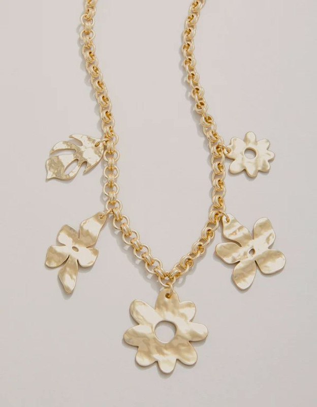 Find your oasis in resort style with Spartina's textured 18kt matte gold plated Kai Charm Necklace, featuring 5 botanically inspired charms.