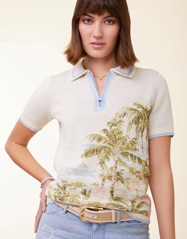 Find laid-back luxury in this Spartina Odessa Knit Polo, made to throw on and go in a soft, comfortable 100% cotton knit. The coastal dream scene is complemented by light blue contrast detailing at the collar and placket, a zipper feature, and striped sleeve opening detail.
