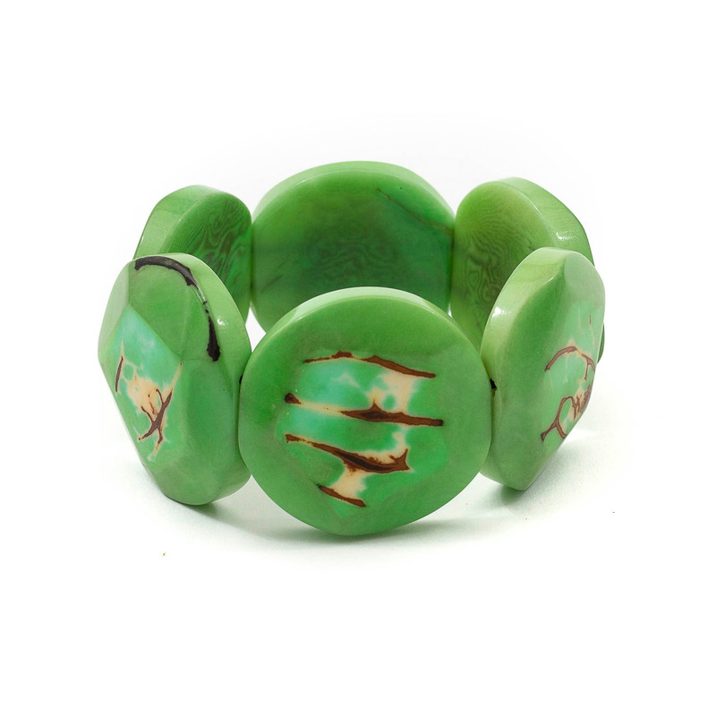 The El Sol bracelet is an eye catcher! It is made from circles of Tagua with natural grain left behind from the nut.