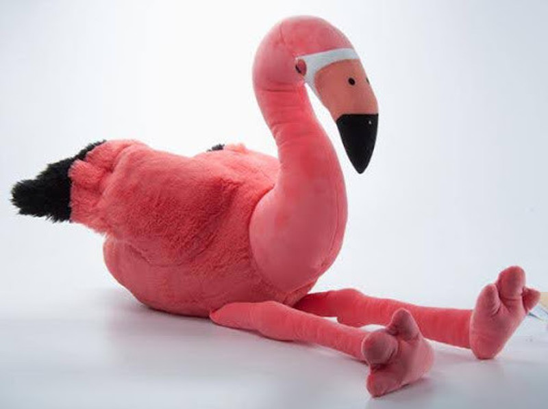 This stuffed extra large flamingo is designed with a realistic flamingo color with velour soft head and floppy legs, and a thicker plush on the body and wings.