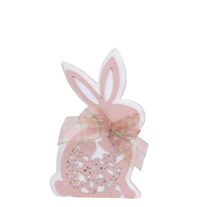 This charming Shelby Bunny Decor is perfect for adding a touch of cuteness to any room. The pink and white bunny has a cut out floral pattern and is the perfect size to display on a desk or shelf.