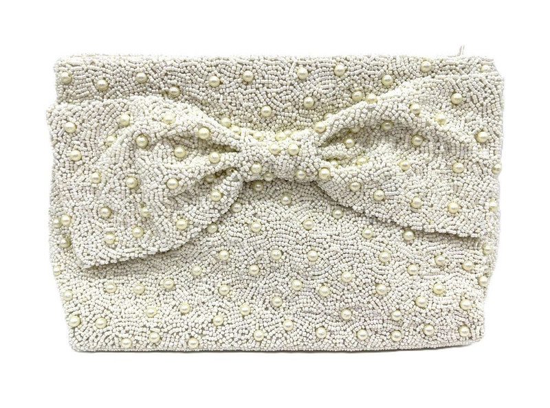 This special beaded handbag with a pearl bow theme is handmade by Tiana Designs. It has a chain strap if you prefer a crossbody. A prefect resort purse.