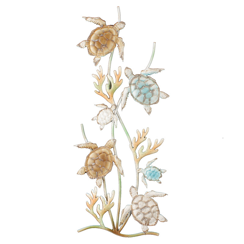 A collage of Turtles in different pastel colors swimming upward in the ocean among the coral . Bring the outside inside with this wall art of turtles.