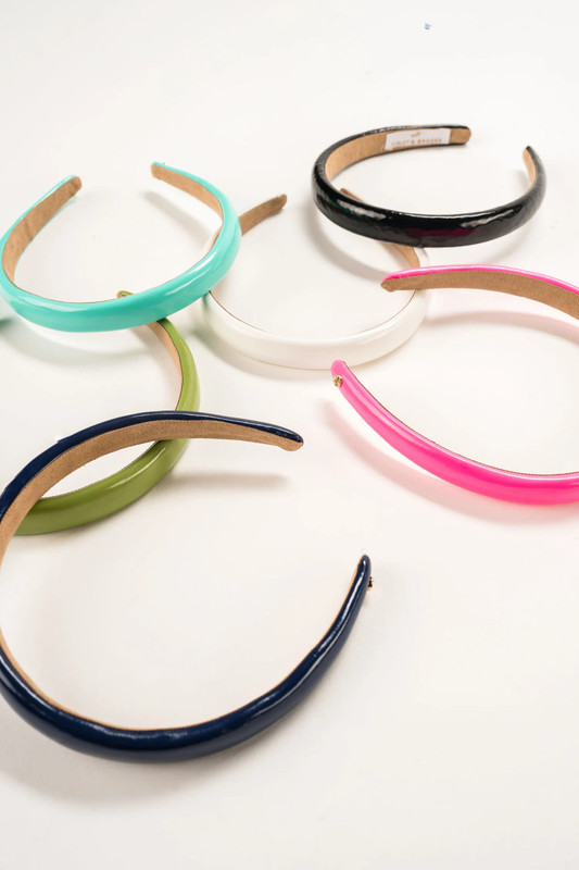 Add a stylish touch to your outfit with the Paige Mini Puff Headband in a luxe patent leather, thin and comfortable.