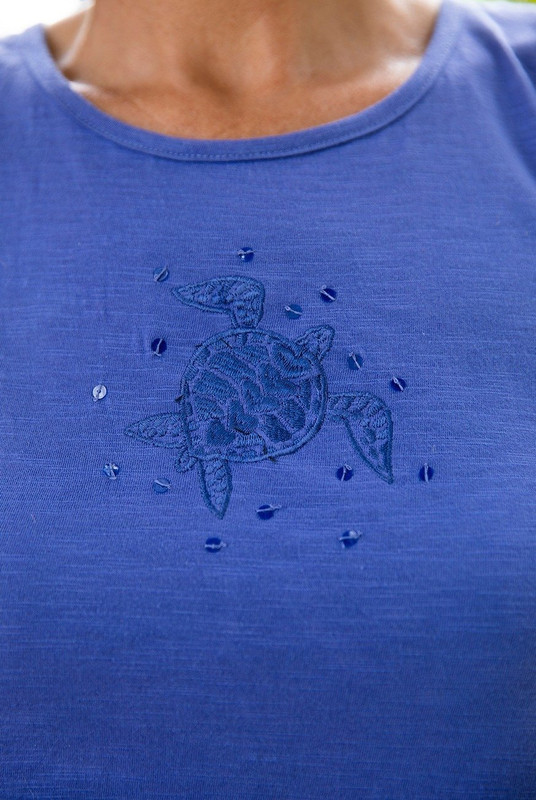 You and me and the deep blue sea, in this sweet new tank top that features our turtle love embroidery and sequins. The best part of this tank top is that it is fitted around the bust, but loose and free around the tummy.