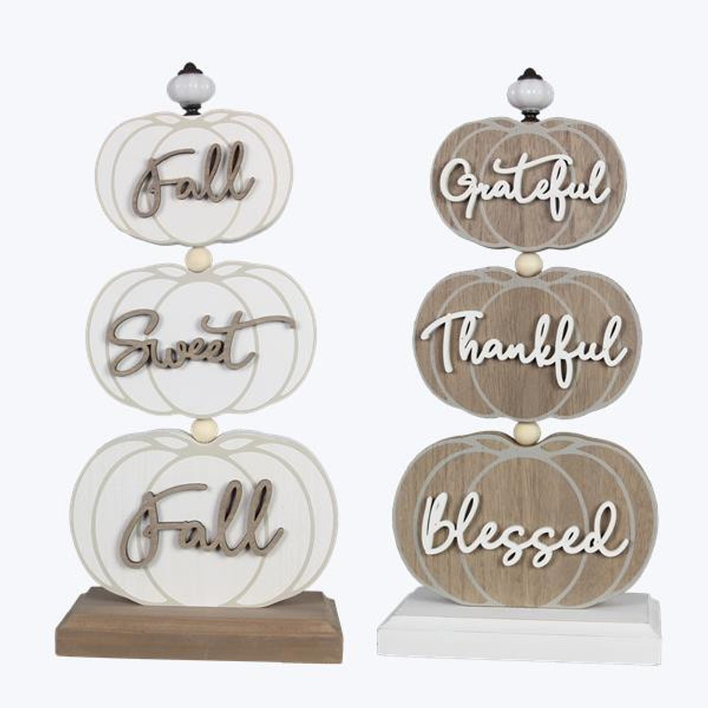 Decorate your table top with this fall 3 stack pumpkins with special words on them.